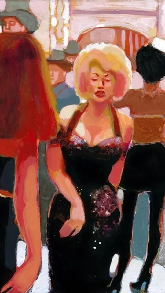 Frequently sketching from life, Hunter uses these perceptual experiences to inform and shape her artistic interpretations of pop culture. Her travels to locations such as New York City, Madrid, Spain, and Oregon, where she creates plein air drawings and caricature sketches, provide rich material for her artwork. Consequently, her sketchbook significantly influences the color and texture choices in her studio practice. Over the past two decades, Dawn has become well-known for her extensive, in-depth projects.